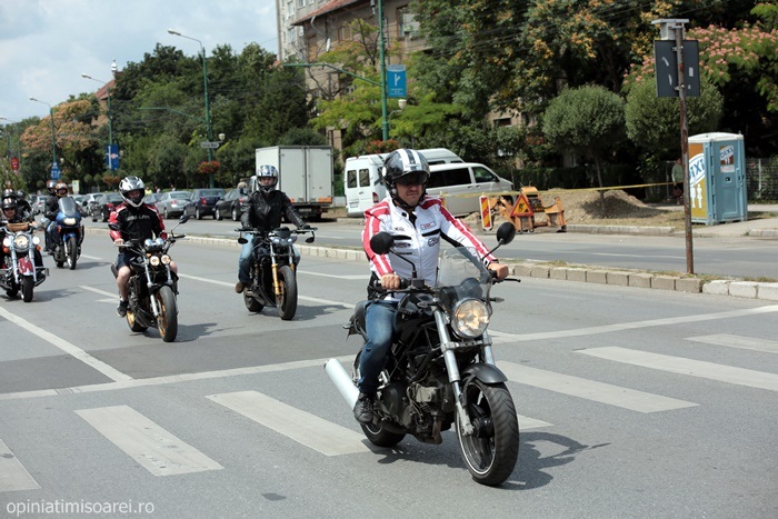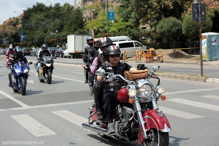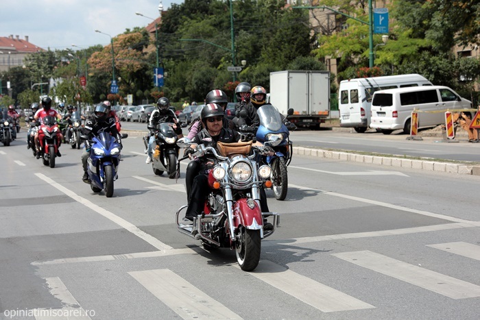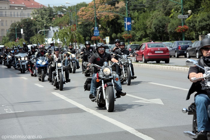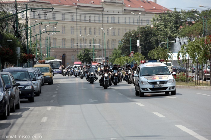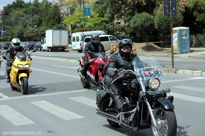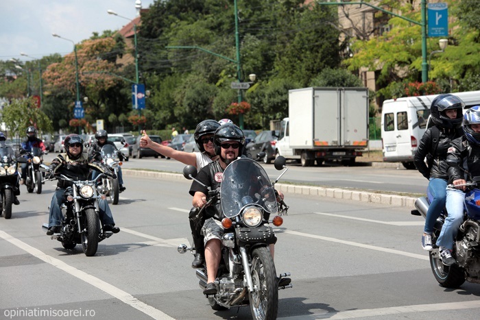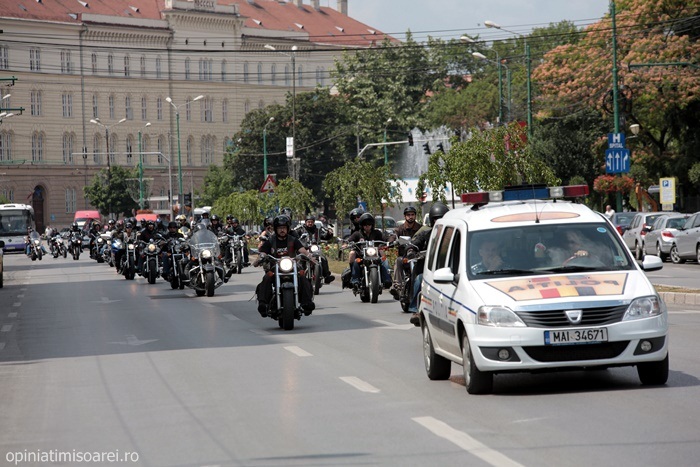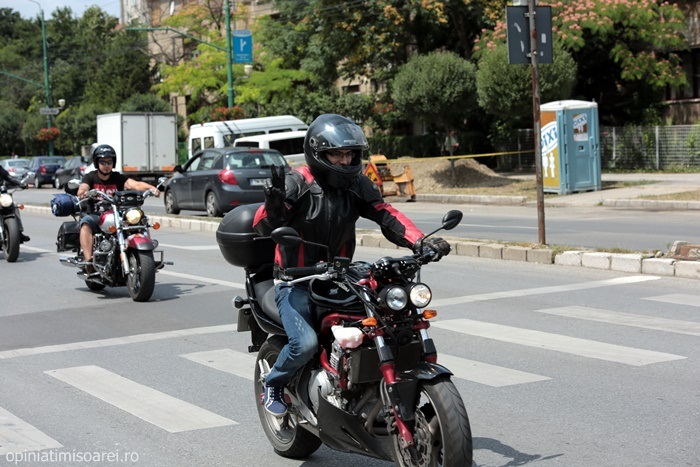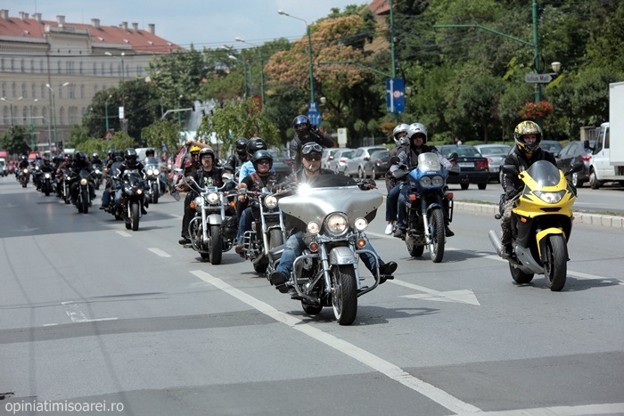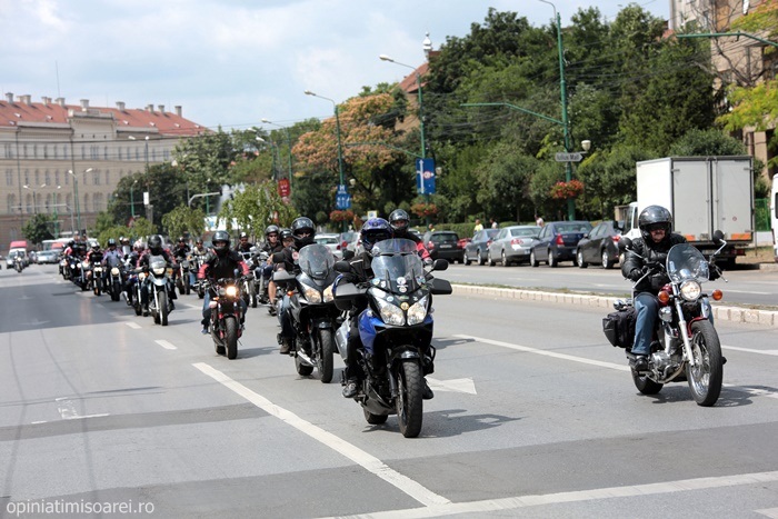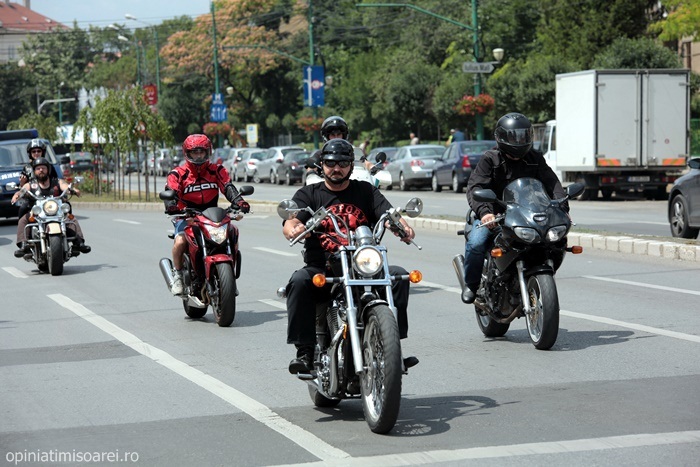 Dupa ce au facut motoarele sa straluceasca, motociclistii timisoreni, si nu numai, au urcat pe ele si au pornit intr-o parada pe strazile din oras. Asa au decis sa le arate invitatilor cat de frumos e orasul Timisoara, dar si sa le atraga atentia soferilor ca sunt egali in trafic.