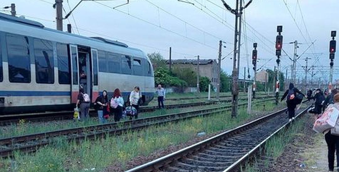 Calatorii au fost dati jos din trenul R3116, in zona Ronat, si lasati sa se descurce pe cont propriu. Oamenii s-au vazut nevoiti sa-si care bagajele printre liniile de cale ferata pana in gara.