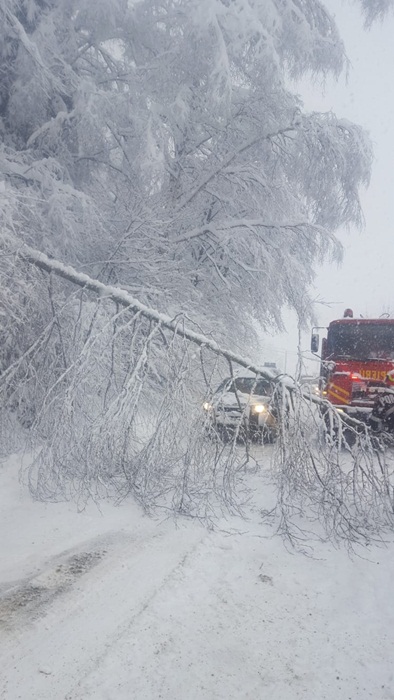 Pompierii militari i-au preluat pe calatorii unui tren in judetul Hunedoara. Garnitura a fost oprita in gara Strambuta dupa ce mai multi copaci s-au prabusit pe liniile de cale ferata.
