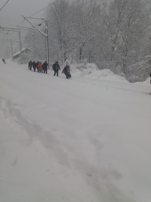 Caderile de zapada din vestul tarii au creat probleme si pe calea ferata. Pe langa intarzieri de zeci si chiar sute de minute, a fost nevoie si de interventia pompierilor pentru ca o parte dintre calatori sa ajunga la destinatie.
