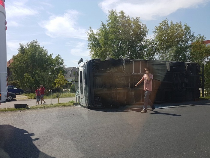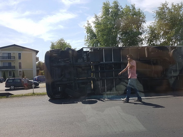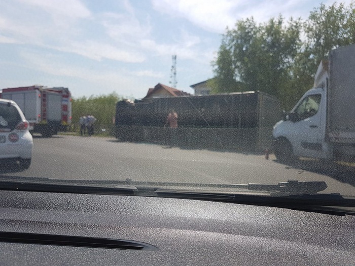 TIMISOARA. Grav accident de circulatie vineri la marginea orasului Timisoara. Un camion s-a rasturnat intr-un sens giratoriu foarte circulat, iar soferul acestuia a fost pur si simpu aruncat prin parbriz, in momentul in care camionul s-a rasturnat.