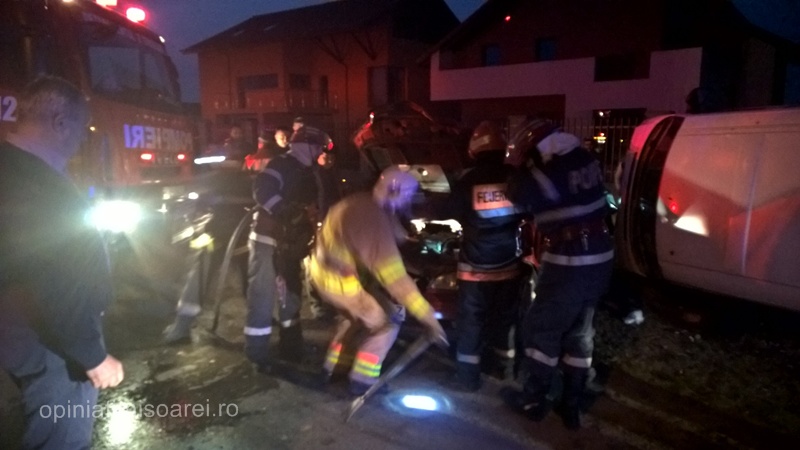 La fata locului a sosit imediat o ambulanta si un echipaj de descarcerare. Soferul Opelului a suferit rani la fata, iar sotia sa, aflata pe scaunul din dreapta, a fost dusa la spital pentru investigatii. Muncitorii transportati in camioneta au scapat teferi.