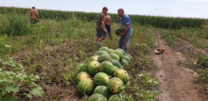 Din camp, lubenita pleaca la un pret de 60 de bani pe kg. Pe piata insa, din cauza crizei, lubenita se vinde cu 2 lei – 2,5 lei kilogramul.