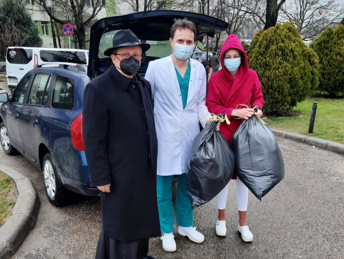 De asemenea, fundatia si parohia au venit si in spijinul pacientilor de la Casa Austria. Pentru acestia, au cumparat o serie de componente medicale si obiecte pentru igiena personala pe care le-au donat chiar in prima zi a postului Pastelui.