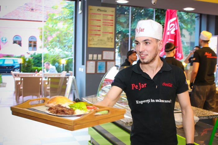 “In acest moment suntem singurii care folosim acest proces de a pregati carnea pe jar. A plecat de la ideea de a face ceva nou, unic, complet diferit. Atunci cand mananci ai si o poveste. In ea este vorba despre cavalerul urban care se lupta cu balaurul, a eliberat printesa urbana, a capturat balaurul si acesta a fost adus in bucataria noastra ca sa lucreze 24 din 24 pentru clientii nostri. Vreau ca acest brand sa fie asemuit cu calitate, curatenie si servicii de calitate“, a declarat pentru opiniatimisoarei.ro, Alexandru Anca, managerul restaurantului Pe Jar.