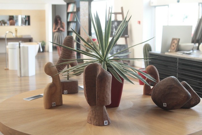 Sculptorul Constantin Grangure participa la expozitie cu 22 de lucrari, dintre care 2 din marmura, iar celelalte din lemn de esenta tare. Sculpturile fac parte din seriile create de artistul plastic in ultimii cinci ani: animale, fructe, seminte fantastice si forme mobile. „Ideea acestei expozitii este foarte buna. Produsele de aici fac parte din game de lux, sunt opere de arta chiar ele in sine. Lumina este foarte generoasa, spatiul are un design deosebit, rafinat, care se preteaza expuneii sculpturilor, graficii si fotografiilor” considera sculptorul Constantin Grangure.