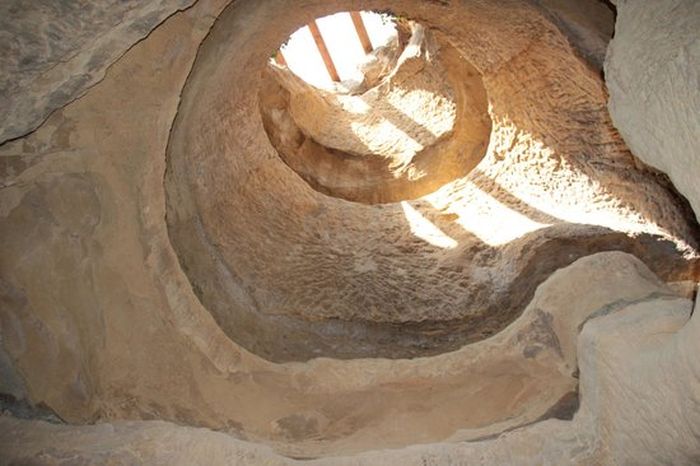 Turla bisericii a fost ridicata din interior, in gresia moale, iar varful e ca un fel de fereastra, de unde o raza de lumina razbate exact in altar. Turnul interior, pe unde intra lumina zilei, este inalt de 10 metri si seamana cu o turla fara acoperis. Traditia populara spune ca pe acolo coboara energiile si ca dedesubt, in pamant, ar exista un tunel de comunicare pana la Cetatea Rasnovului.