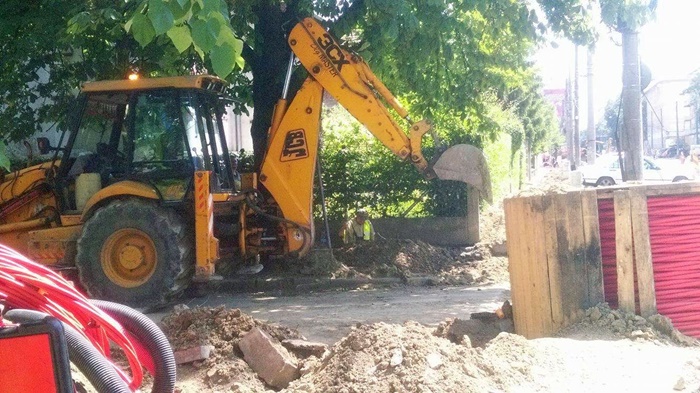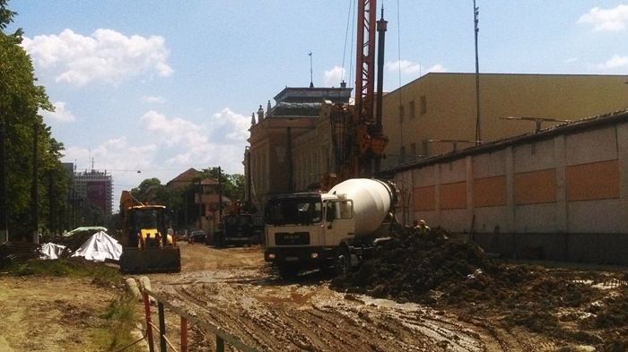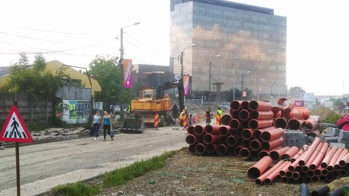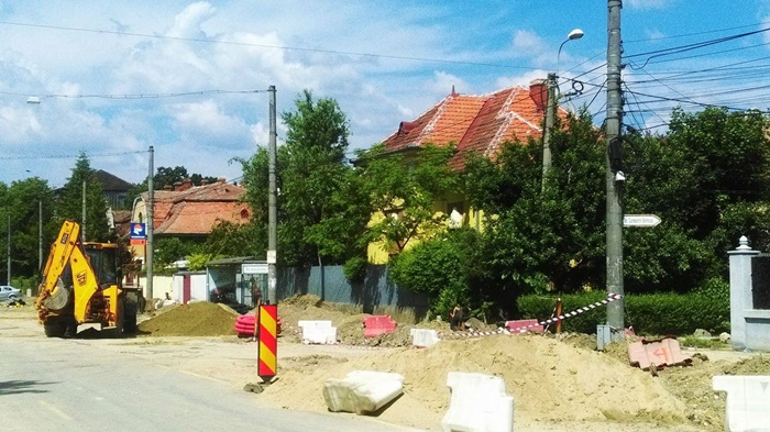 Utilaje rasfirate se vedeau care incotro, abandonate, doi angajati ai firmei de constructii sapau o groapa in dreptul Tribunalului Militar, iar, la cativa metri departare, se puteau intrezari alti 5 care adanceau un sant. In rest, liniste si pace.