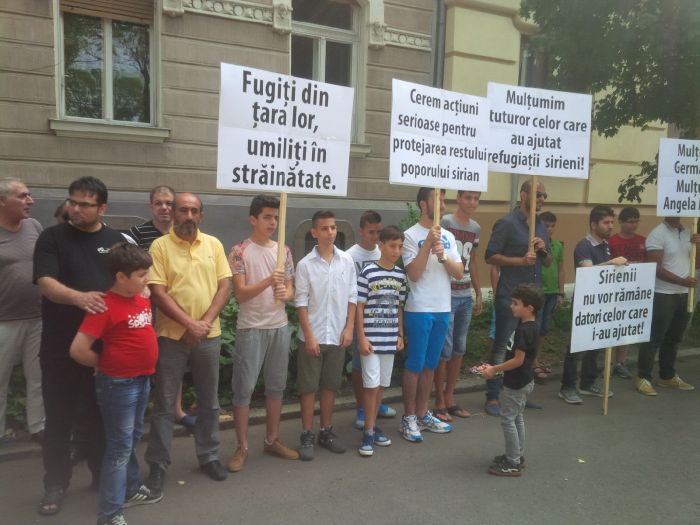 “Fugiti din tara lor, umiliti in strainatate”, “Sirienii nu vor ramane datori celor care i-au ajutat”, “Multumim Germania, multumim Angela Merkel” si “Multumim tuturor celor care au ajutat refugiatii sirieni” sunt doar cateva dintre mesajele pe care le-au scris pe pancarte sirienii care au participat la actiune.