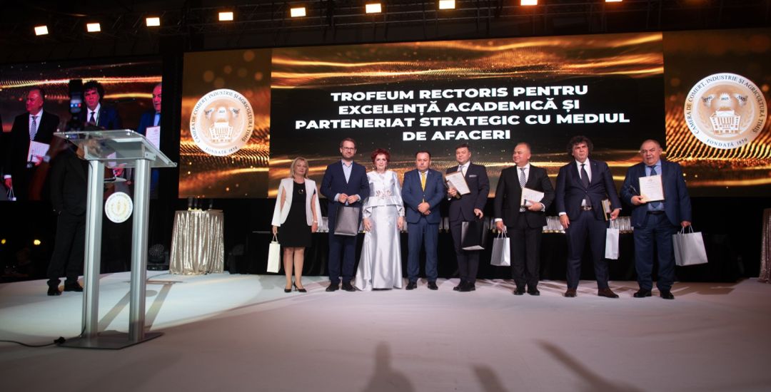 În semn de apreciere pentru construirea unui model de excelență academică, susținut de cercetare riguroasă și valori universitare autentice, pentru dezvoltarea unui parteneriat activ și durabil cu mediul de afaceri și pentru un exemplu constant de profesionalism și leadership universitar, a acordat rectorilor celor 4 universitîți de stat din Timișoara TROFEUM RECTORIS PENTRU EXCELENȚĂ ACADEMICĂ ȘI PARTENERIAT STRATEGIC CU MEDIUL DE AFACERI.