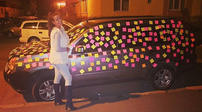 Dupa ce a tapetat autoturismul, s-a fotografiat langa el si a postat mai multe poze pe Facebook sub titlul: ‘Cand iubesti ca o nebuna’.