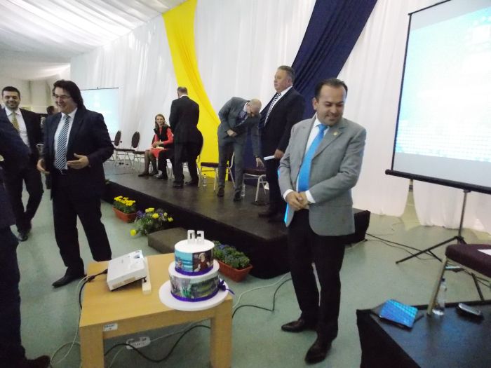 TIMISOARA. Peste 400 de membri ai PNL i-au cantat ”La multi ani!” primarului Timisoarei si co-presedinte al PNL Timis, Nicolae Robu care astazi a implinit 60 de ani. Si, pentru ca tabloul sa fie complet, sarbatoritul a primit nu unul, ci doua torturi.