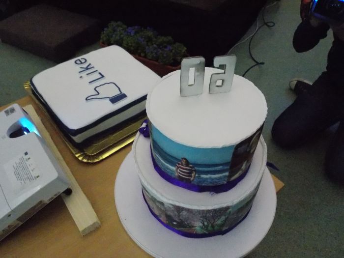 Cel de-al doilea tort a fost daruit de tinerii liberali. Imaginea de pe tort e un ”Like”, aluzie la faptul ca Robu foloseste reteaua de socializare Facebook pentru a comunica mai ales cu cetatenii Timisoarei.