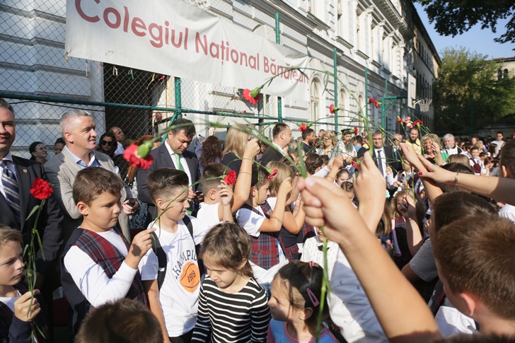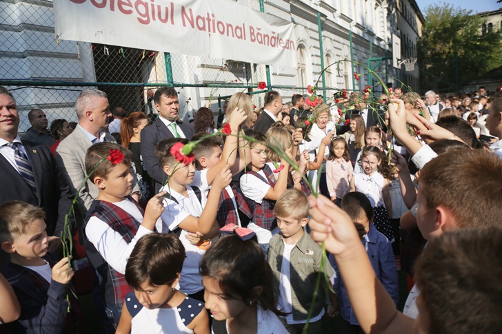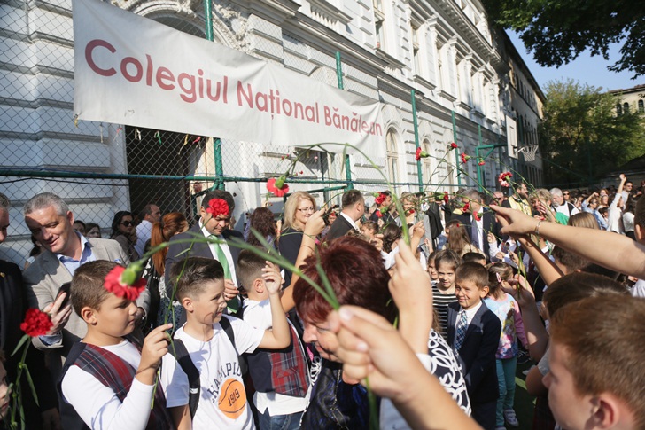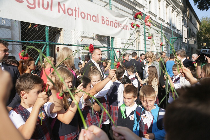 Si anul acesta, la deschiderea anului scolar, curtea Colegiului National Banatean s-a umplut de oficiali. Cu totii le-au urat micutilor un an plin de impliniri, iar primarul Timisoarei i-a felicitat pe cei care au obtinut rezultate deosebite