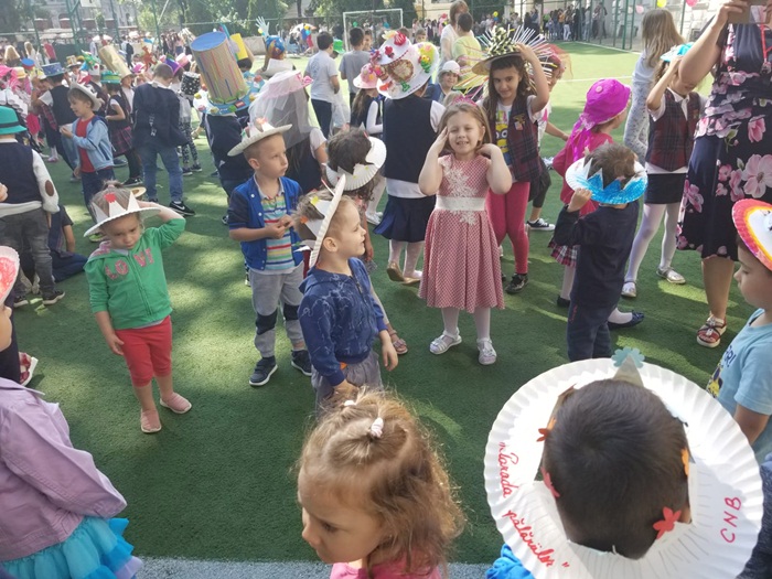 Mici, mari, inalte, cu boruri sau fara, tuguiate, impodobite in fel si chip, din carton, hartie, materiale textile si tot felul de alte obiecte reciclabile, sute de palarii si-au facut loc pe terenul de sport de la CNB luni dimineata.