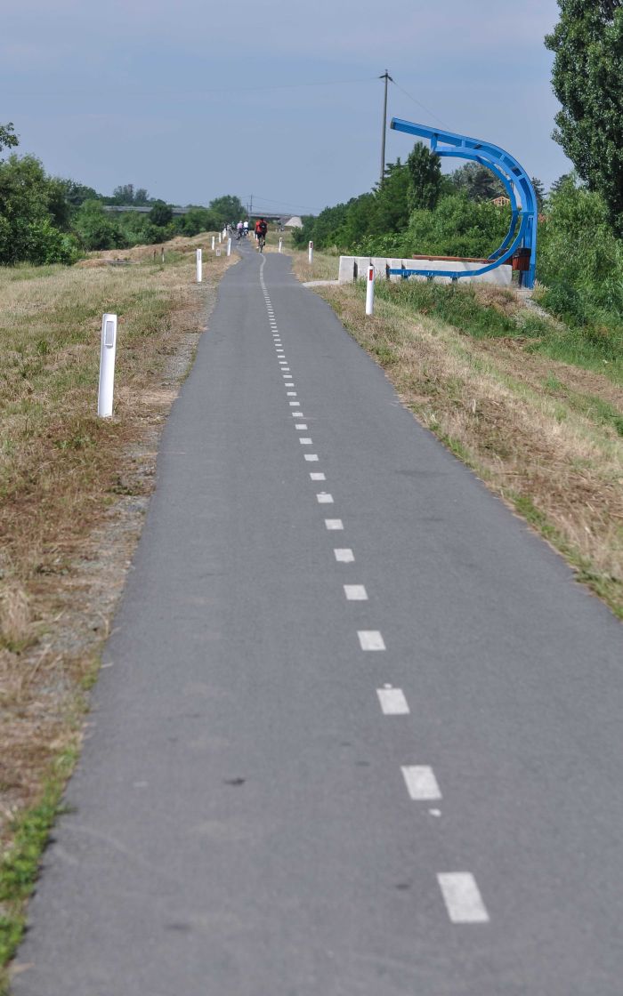 Pista de biciclete porneste in aval de Podul Modos si continua, pe o lungime de 37 de kilometri, pana la frontiera cu Serbia. Scopul constructiei acestei pistei de cicloturism a fost de a dezvolta potentialul turistic local si regional, cat si acela de a promova cooperarea transfrontaliera romano-sarba prin dezvoltarea acestui tip de turism alternativ.