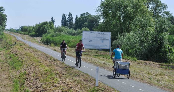 TIMISOARA. A fost receptionata cea mai lunga pista de biciclete din Romania, cea care leaga Timisoara de Serbia si care parcurge un traseu de 37 de kilometri de-a lungul raului Bega.
