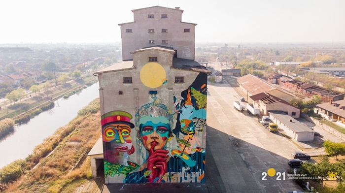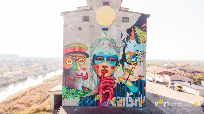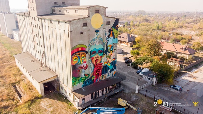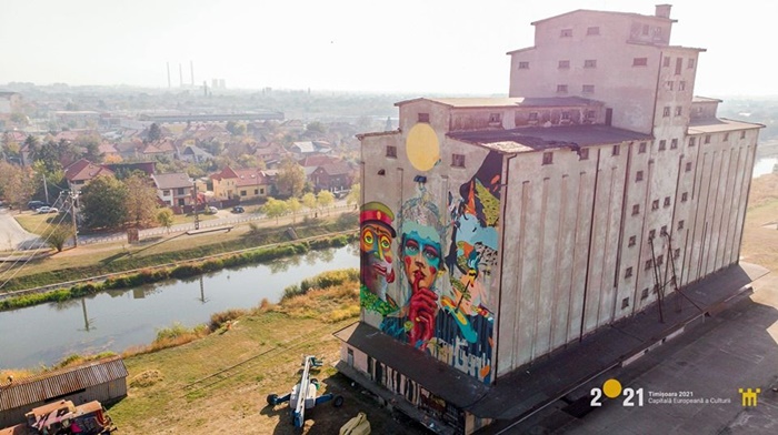Timp de o saptamana, patru artisti romani au pictat pe un perete de peste 500 metri patrati, fatada unei cladiri industriale de pe malul Begai, un siloz.