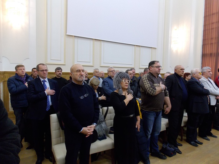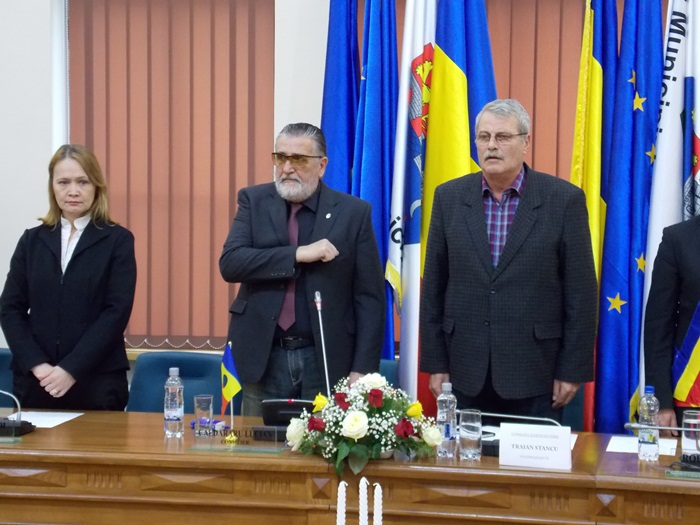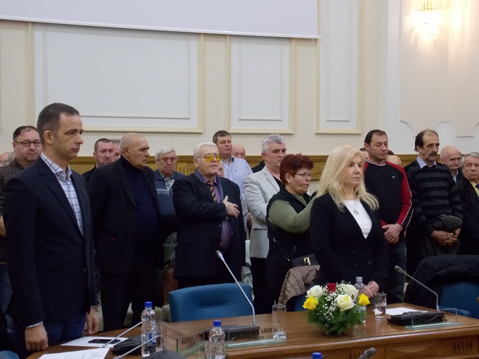 Sedinta a inceput cu intonarea imnului national, dar si a imnului Timisoarei, dupa care s-au tinut momente de reculegere in memoria eroilor rapusi de gloante in Decembrie 89 si. Primul chiar dupa imnuri, in amintirea celor decedati in zilele Revoltei de la Timisoara si a liderilor revolutionarilor plecati in luma dreptilor.