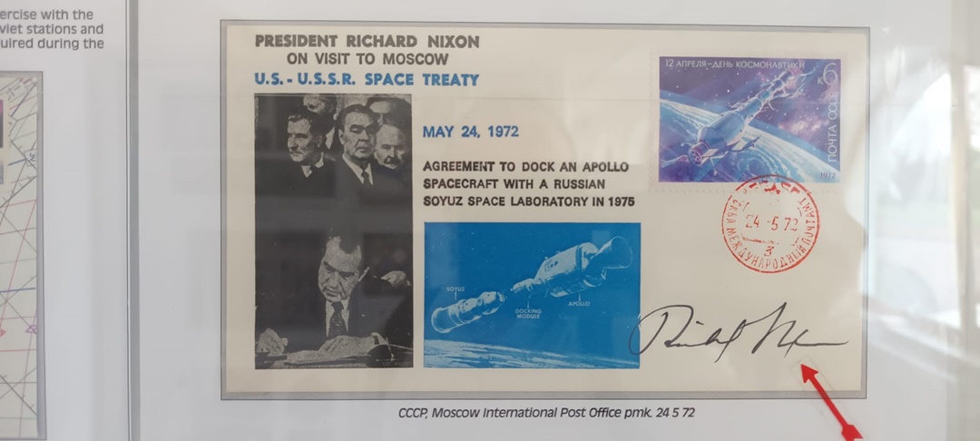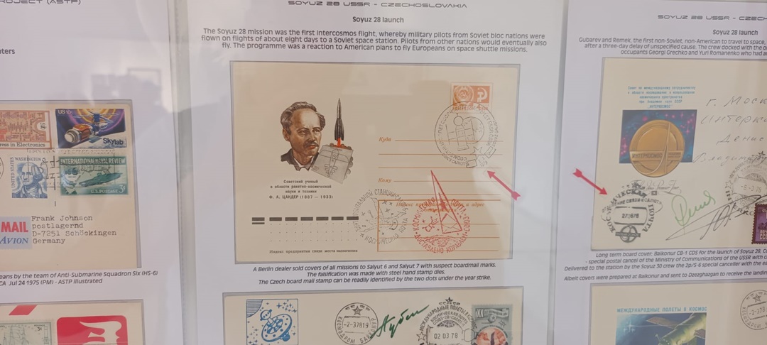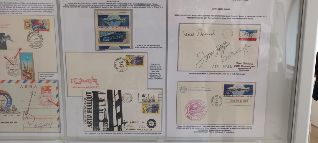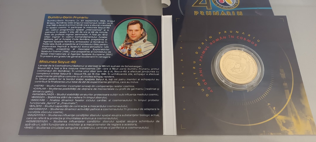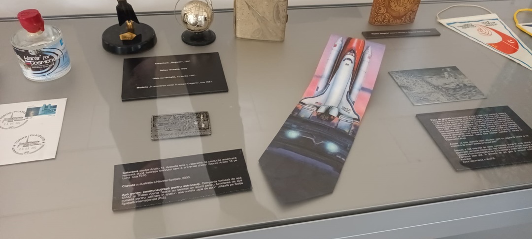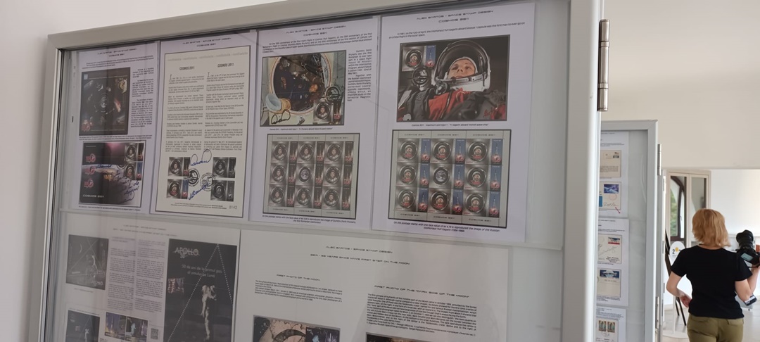 “Si in partea de astrofilatelie sunt piese unicat in lume, dar cu siguranta ceea ce nu a mai fost expus niciodata in Romania, si din cunostintele mele nici in lume, si am vazut cateva muzee de spatiu din lume, sunt niste stampile exact de la Oficiul Postal Militar Secret din Baykonur, niste panglici, e greu de tradus din limba engleza, pentru ca in Romania nu avem terminologia pentru genul acesta de colectii. Sunt ‘memorabilia’, sunt piese legate de astronautica, bucati de nava spatiala. Avem un film care a fost trimis Ambasadei Americii din Romania pentru promovarea misiunii Apollo 11, in 1969, sunt ziare de epoca. Este un ziar dintre cele 10, sau poate mai putine, pe care le-a avut la bord domnul Dumitru Prunariu, unul din ele este aici. Sub este fotografia cu dansul cu un exemplar din cele cateva. Sunt ziare de epoca, de exemplu Informatia Bucurestiului, unul dintre primele ziare din lume care a scos o editie speciala la cateva ore dupa ce primul om ajungea in cosmos, Yuri Gagarin. Absolut toata presa, 99,9% din presa lumii a anuntat evenimentul in 13 aprilie, aici avem expus un original, din 12 aprilie, practic, la cateva ore de cand Moscova daduse publicitatii faptul ca un om este in cosmos. Veti vedea o pagina de almanah, in 1882 daca nu ma insel, care promova cartea lui Jules Verne, despre care stim ca l-a inspirat pe Herman Oberth, romanul nostru, considerat parintele astronauticii, si care, la randul sau, i-a invatat pe cei care au creat rachetele cu care s-a ajuns pe luna. Sunt o gramada de obiecte istorice, unicat, prima data expuse, si eu sper ca vor fi o inspiratie pentru copii, si pentru copiii din noi“, spune Alec Bartos, presedintele Comisiei de Astrofilatelie a Federatiei Filatelice Romane.