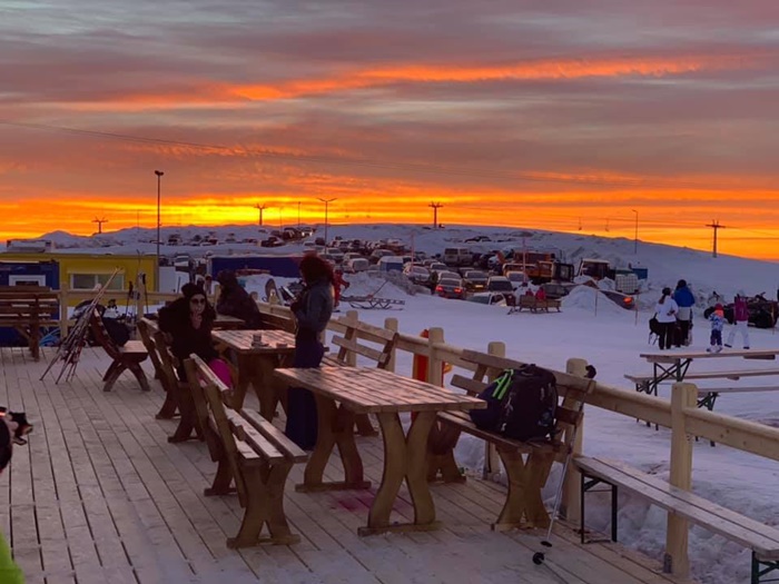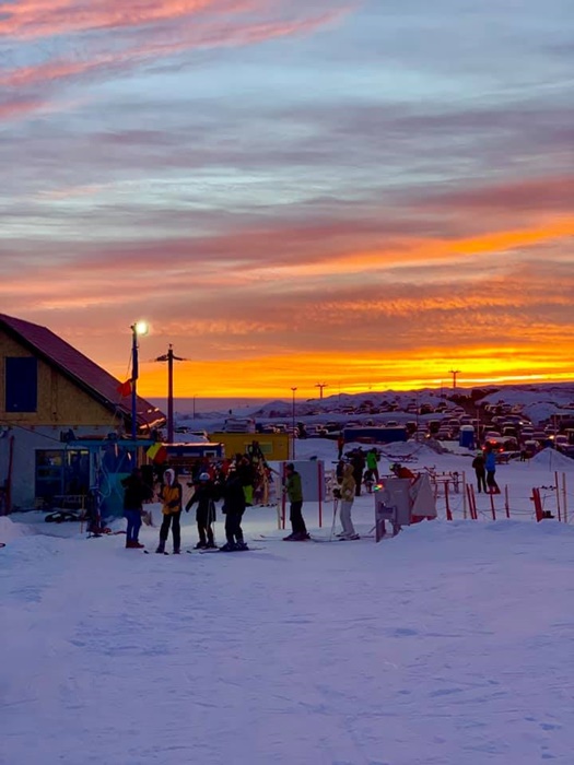 La apus, schiorii au fost rasplatiti din plin cu un neasteptat joc de culori facut de soare, iar crestele muntilor pareau ca au luat foc.
