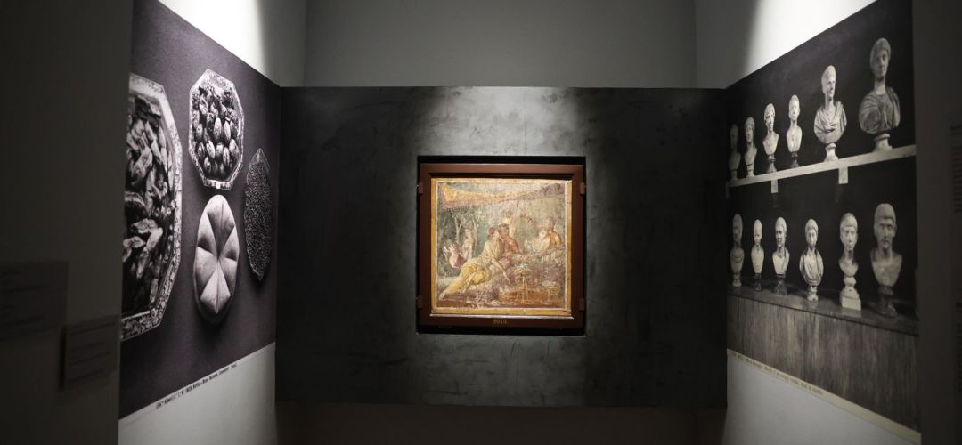Fresce reprezentative stilurilor pompeiene, „fragmente de grădini pictate”, scene ritualice sau de banchet, sculpturi, ceramică neoclasică și lucrări ale unor mari artiști ai secolelor XVIII–XIX, care au activat la Napoli prin școala de la Posillipo, sunt puse în dialog cu creații contemporane semnate de Gian Maria Tosatti, Alberto Burri, Lucio Fontana, Anselm Kiefer, Bernea and Bodgan și Bogdan Vlăduță.