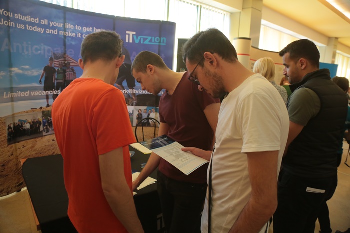 Studentii s-au inghesuit inca de la deschiderea targului sa afle care este oferta angajatorilor si au luat cu asalt stadurile, pentru a gasi ceva ce li se potriveste.