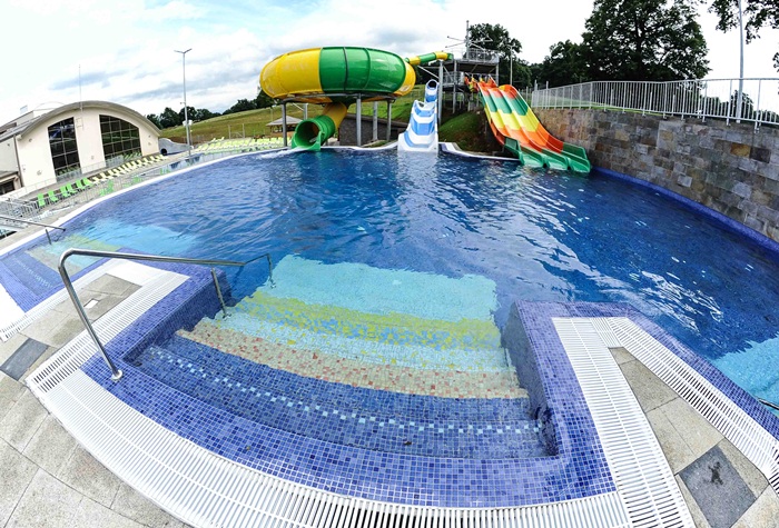 Centrul SPA si sala multifunctionala, denumite impreuna AquaPark Arsenal, include 3 zone distincte: SunWaves, Inner Bliss si Belvedere Lounge&Terasa. SunWaves este partea de exterior, care include 4 bazine (agrement, inot, de copii, respectiv pentru tobogane), 6 tobogane si un bar exterior. Inner Bliss reprezinta zona de interior, cu tobogane, 4 bazine (pentru copii, de relaxare cu raul lenes si cu portiuni cu hidromasaj, cu apa rece, respectiv pentru tobogane), 3 saune si un bar. Privelistea este elementul principal al zonei Belvedere Lounge&Terasa. Acest spatiu include 2 terase, un bar, un lounge si o cada cu hidromasaj. Adancimea bazinelor pentru copii este de 40 – 80 cm, iar a celorlaltor bazine de 1,2m. Temperatura apei este setata in permanenta la 29-32 de grade Celsius.
