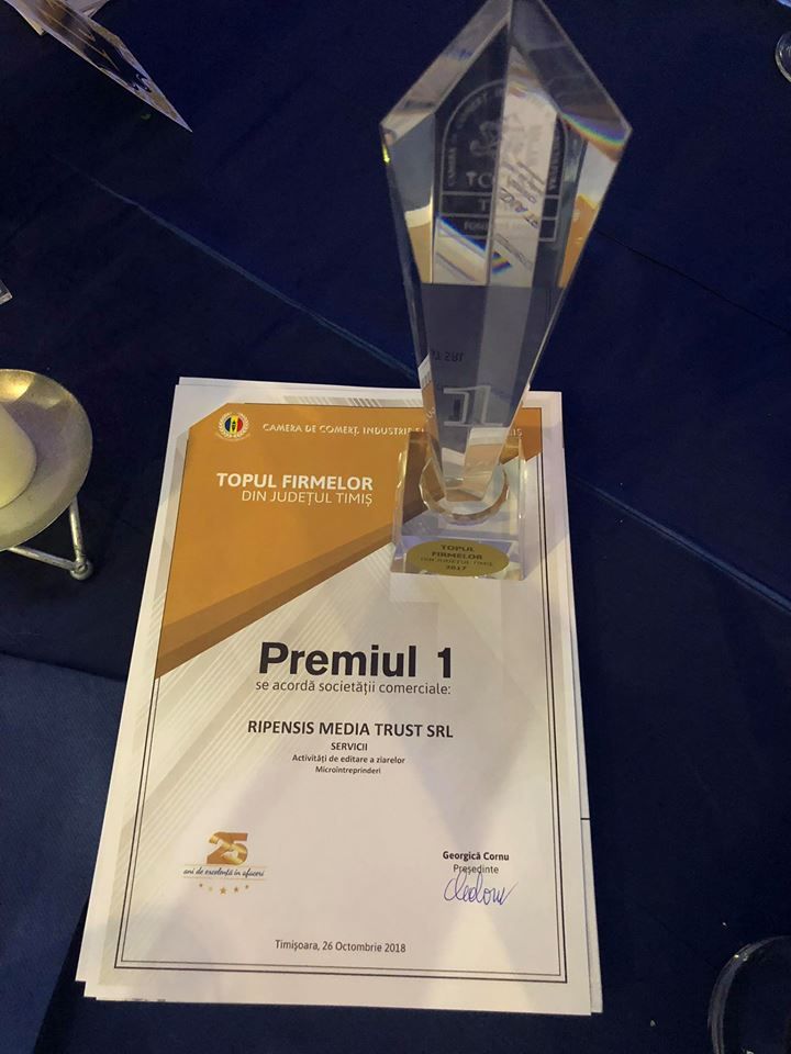 Printre premianti s-a numarat si Opinia Timisoarei. Firma care editeaza site-ul nostru de stiri, Ripensis Media Trust, a luat Locul I la profit in 2017 in judetul Timis la categoria Servicii – Mass Media. Aceasta pentru al doilea an consecutiv.