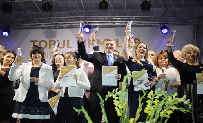 “Este o noua editie, una cu aniversare. Este a 25-a editie a Topului Firmelor, suntem in an aniversar, iar evenimentul este organizat sub semnul Centenarului Marii Uniri. Avem premiile I, II si III, trofeul de excelenta si premiile speciale. Aici ne-am indreptat atentia spre domeniul sanatatii si invatamantul profesional in sistem dual. Criza fortei de munca este o prioritate a CCIAT, de aceea premiem 6 licee care isi apleaca atentia spre invatamantul dual. Avem si un premiu de responsabilitate sociala, care anul acesta se indreapta catre o asociatie non profit de terapie intensiva. Suntem tot in domeniul sanitar cand spunem ca acordam un premiu pentru 25 de ani de inima sanatoasa, care se duce spre Institutul de Boli Cardiovasculare, care a aniversat 25 de ani de activitate. Avem ca premii speciale Trofeul de Excelenta pentru Invatamantul Superior, avem premiul Stafeta Generatiei. Toate acestea se intampla datorita faptului ca cele 1787 de firme care sunt premiate au realizat o cifra de afaceri de 8,1 miliarde de euro din cele 12,8 miliarde pe care le-au realizat cele 30.024 de societati, adica 64% din procentul cifrei de afaceri din judetul Timis”, a spus Florica Chirita, directorul general al camerei de Comert Industrie si Agricultura Timis.