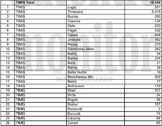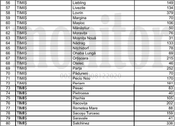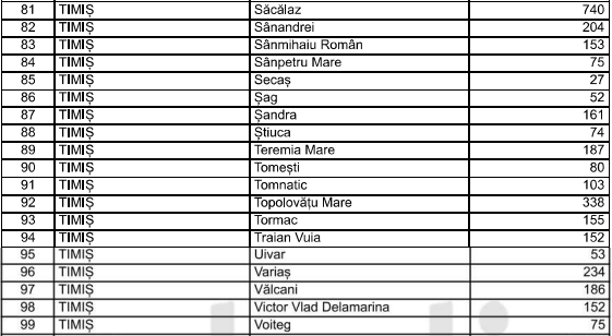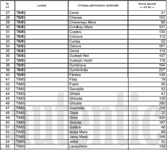 Mai jos puteti vedea sumele care vor fi date pentru fiecare localitate din Timis.