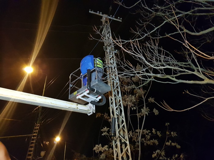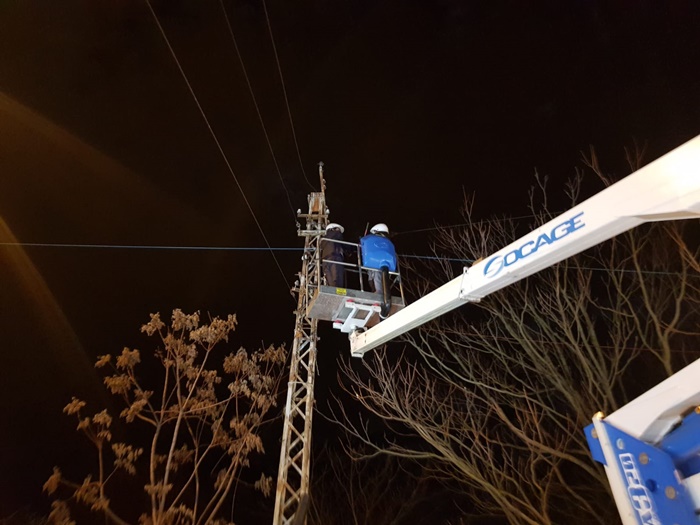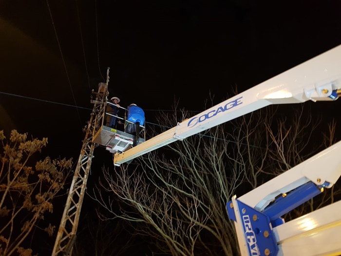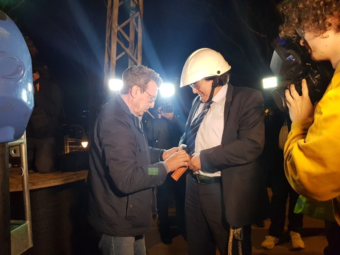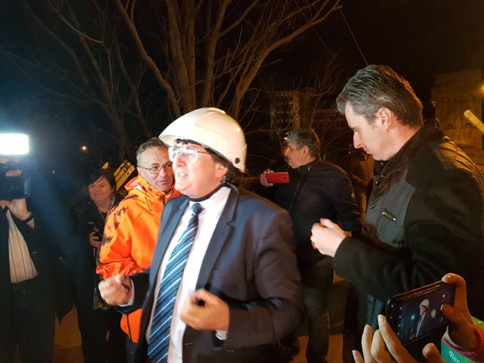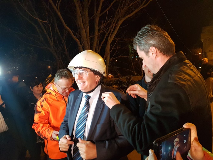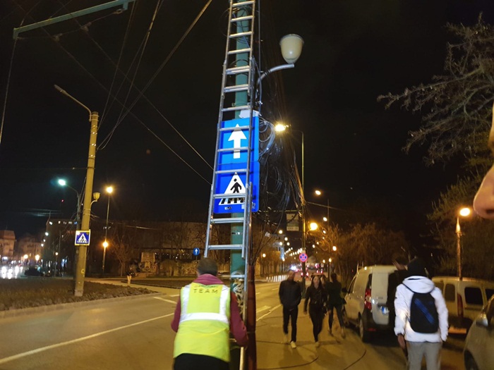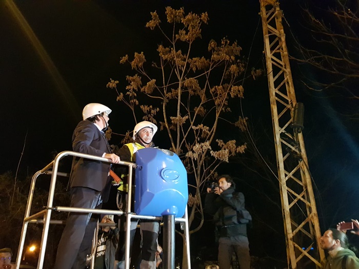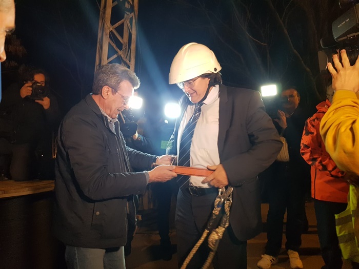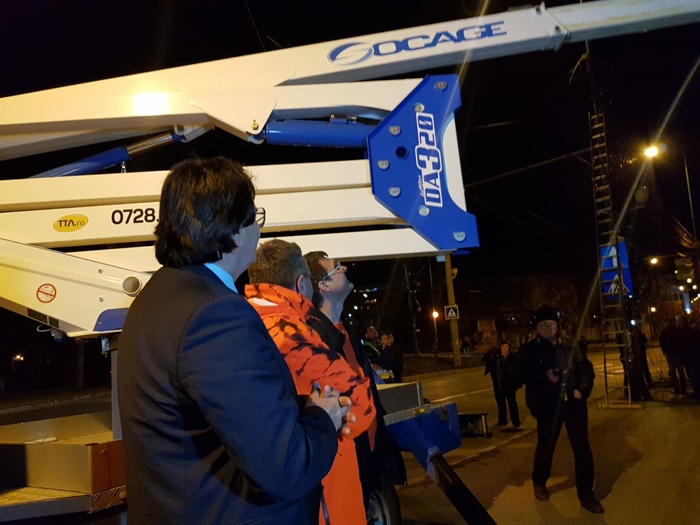 Edilul sef al Timisoarei a urcat si el intr-o nacela a unui utilaj de lucru la inaltime si a taiat cu mana lui cateva cabluri.