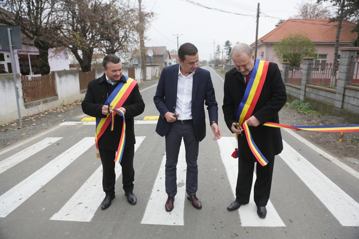 “Imi doresc ca in anii urmatori sa devina o mini-centura in partea de vest a orasului. S-au mai facut bucati in perioada anterioara. De aici, fiind in Sanmihaiu Roman imi doresc sa continuam pe Sanmihaiu Roman – Parta aproape de Sag de fosta groapa de gunoi, astfel incat sa inchidem un cerc, de la Sacalaz, de la domnul primar sa iesim spre Dudesti astfel incat aceasta mini centura sa devina realitate. E o investitie de 10,7 milioane de lei pe o lungime de 5,4 km. Vreau sa profit de momentul de astazi sa anunt ca o sa punem limitatoare de tonaj. La 12,5 tone. Pentru ca altfel peste un an acest drum care azi arata foarte bine, va fi facut praf. Pentru ca nu e proiectat pentru mare tonaj si pentru trafic greu. O sa facem aceasta limitare de tonaj pentru ca pe de o parte se strica drumul si pe de alta parte cetatenii reclama si au dreptate pentru ca nu e normal ca traficul greu sa treaca prin mijlocul comunelor. Facem lucrul asta, sper ca legea sa fie respectata incusiv de cei care fac transport de mare tonaj“, a declarat Sorin Grindeanu, presedintele CJ Timis.