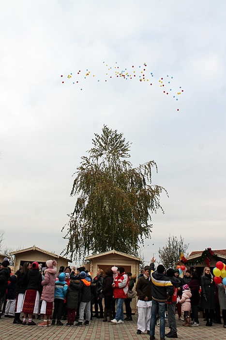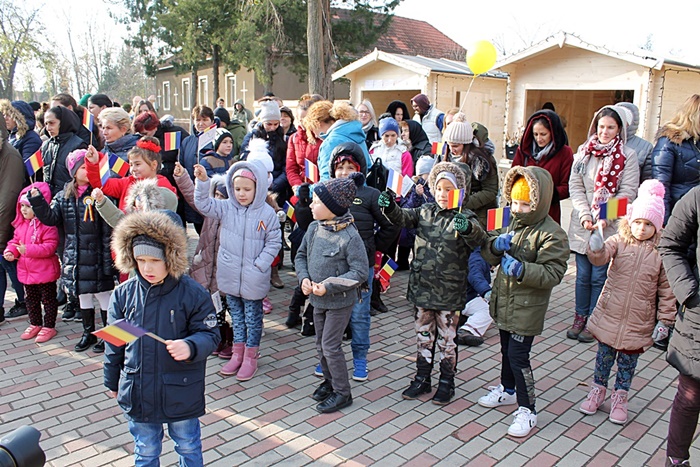 La orele prânzului, zeci de baloane tricolore au umplut cerul, copiii din Șag le-au dat drumul pentru a marca acest eveniment special, trăit o dată în viață.