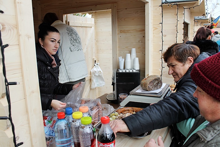 Astfel, a fost inaugurat și micul Târg de Crăciun la care participă producători locali cu bunătăți preparate după rețete originale, dar și cu cadouri artizanale și dulciuri.