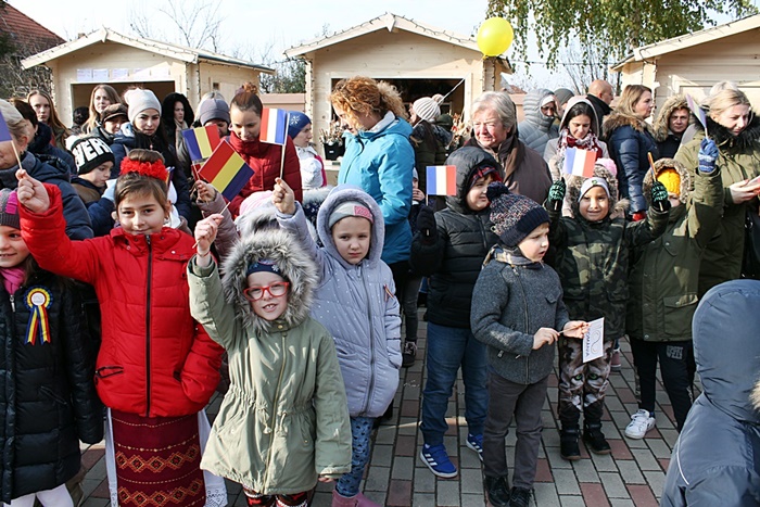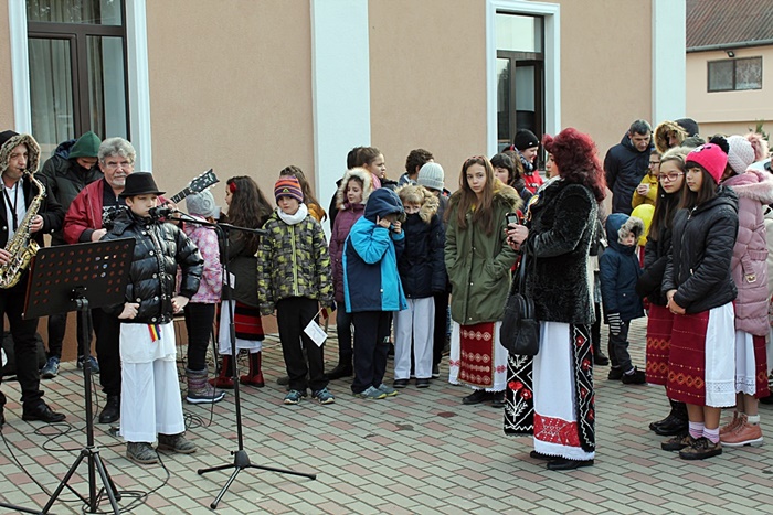 A urmat un program artistic, cu cântece românești interpretate de elevii școlii. La final, toată lumea a fost invitată la o porție de fasole cu ciolan, o rețetă locală, acompaniată obligatoriu de un pahar de vin fiert.