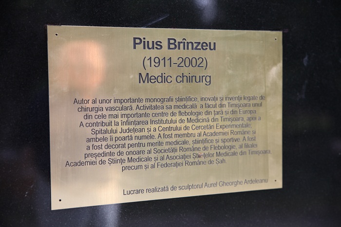 In dimineata zilei in care sarbatorim orasul Timisoara, autoritatile si simplii timisoreni au luat parte la o scurta festivitate de cinstire a uneia dintre cele mai importante personalitati pe care a dat-o scoala banateana de Medicina. A fost dezvelit bustul lui Pius Brinzeu, un chirurg exceptional care, prin activitatea sa medicala, a facut din Timisoara unul dintre cele mai importante centre de flebologie din tara si din Europa. A contribuit la infiintarea Institutului de Medicina din Timisoara, apoi a Spitalului Judetean si a Centrului de Cercetari Experimentale.