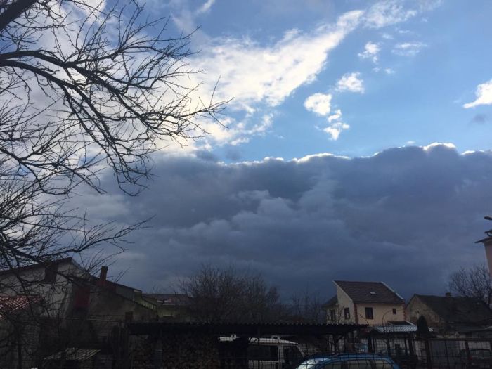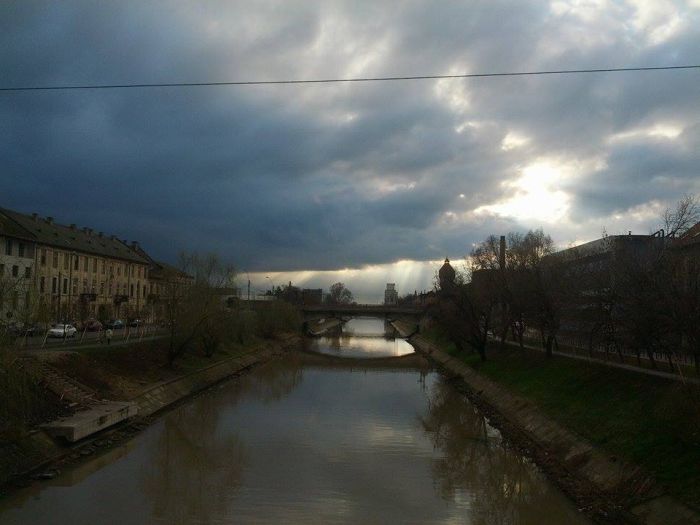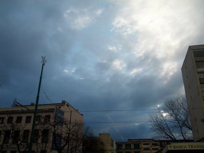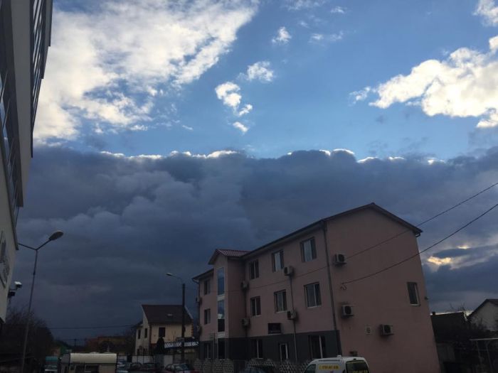 TIMISOARA. Inceputul de primavara ofera timisorenilor un adevarat spectacol. Norii au luat forme impresionante, iar soarele a apucat sa trimita, totusi, cateva raze cu doar cateva minute inainte sa isi faca prezenta si ploaia. In ropote. Insa in doar unele zone din oras.