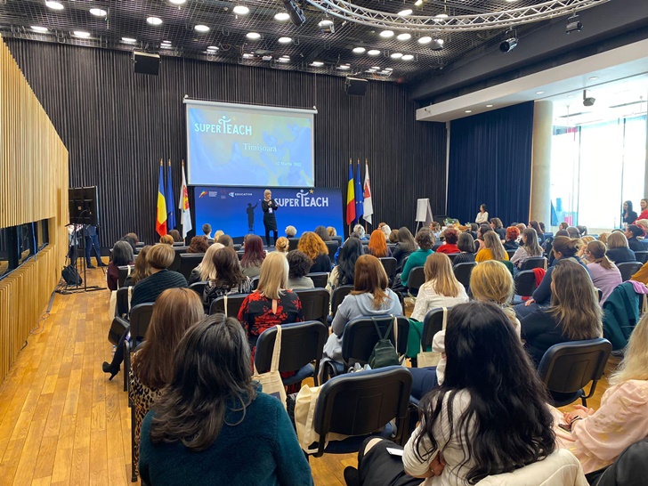 TIMISOARA. Conferinta SuperTeach la Timisoara, in acest sfarsit de saptamana. Sala multifunctionala a Consiliului Judetean Timis a devenit neincapatoare pentru multimea de dascali care si-au asumat misiunea de a revolutiona invatamantul in Romania. Vorbim de o comunitate de profesori dornici sa gaseasca impreuna cele mai potrivite resurse pentru ca generatiile de copii pe care le cresc sa ofere acestei tari un alt viitor.