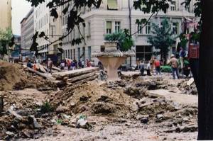 Atunci a fost ultima lucrare de amploare executata in centrul orasului cand a fost schimbat pavajul de piatra cubica si inlocuit cu actualele dale. Tot atunci au fost scoase si liniile de tramvai din zona zero a Timisoarei.