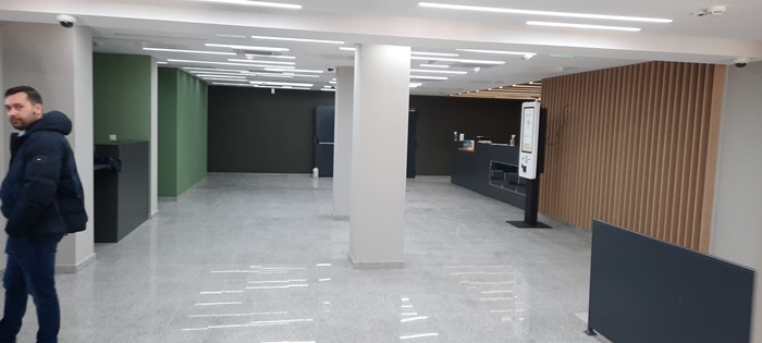 Si holul de la intrare a fost refacut complet, iar in viitor in acest spatiu este planuita amplasarea unei cafenele.