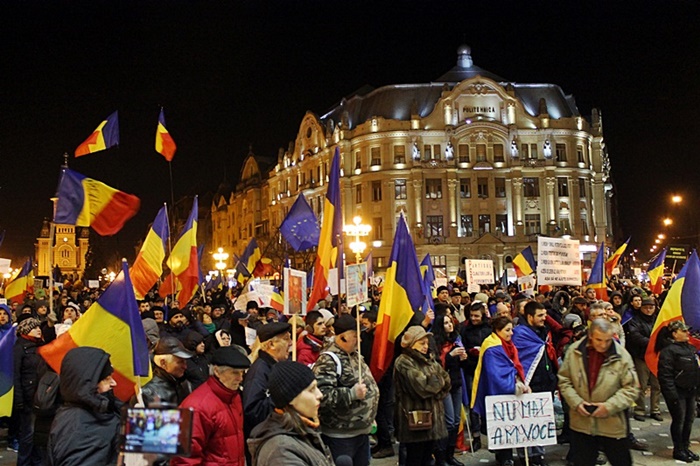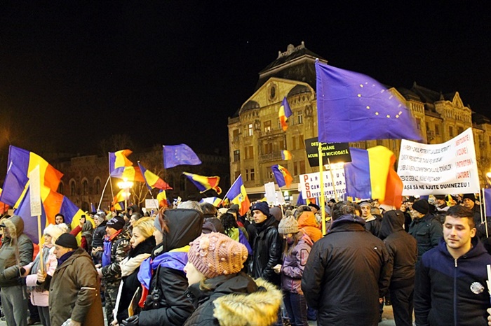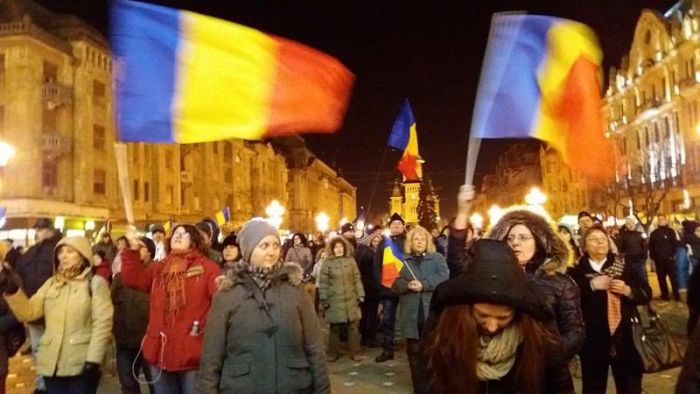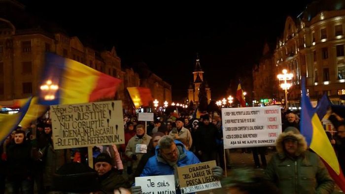 TIMISOARA. Timisorenii au iesit, din nou, duminica seara, sa protesteze fata de deciziile Guvernului Grindeanu si cer demisia atat a premierului, cat si a intregului cabinet, precum si a presedintelui Camerei Deputatilor, Liviu Dragnea si a presedintelui Senatului, Calin Popescu Tariceanu.