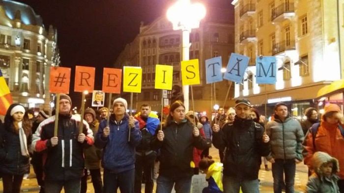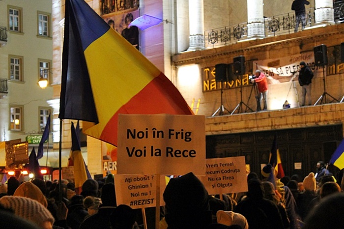 Protestatarii au strigat lozinci precum: “Demisia“, “Rezistam, nu plecam“, “Noi in frig, voi la racoare” si altele.