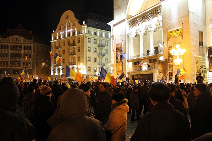 UPDATE: La ora 21.30 protestul de la Timisoara s-a incheiat. Din 5000 de piepturi au rasunat Imnul de Stat al Romaniei si Imnul Timisoarei.