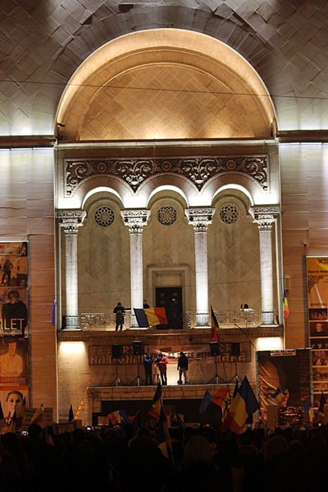 Protestul de la Timisoara a inceput dupa ora 19.00, cand in Piata Operei s-a cantat Imnul National al Romaniei.