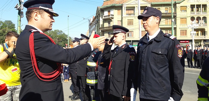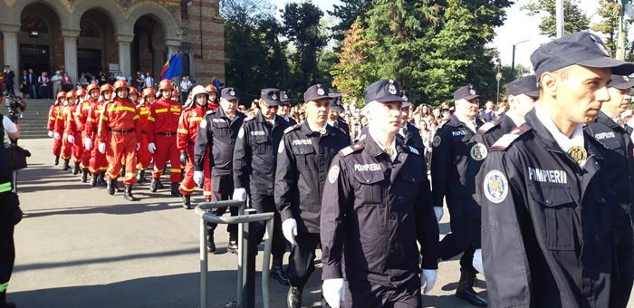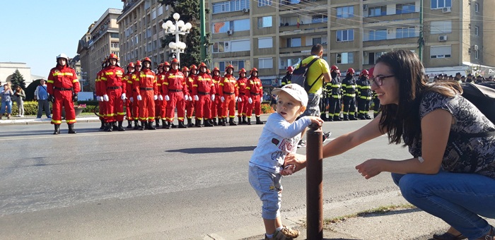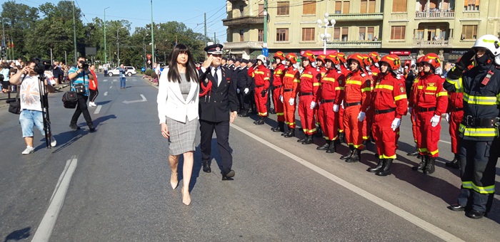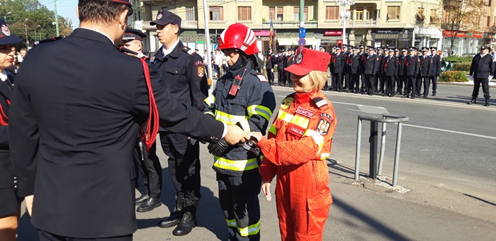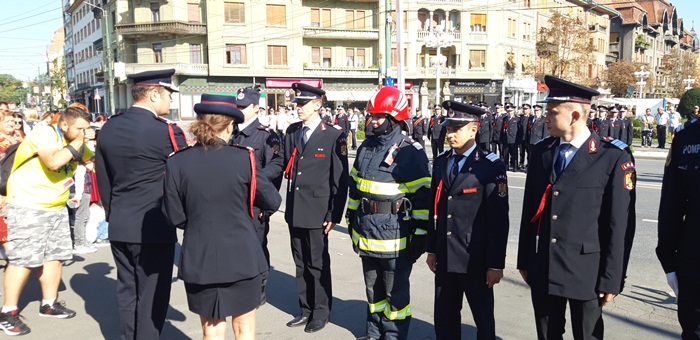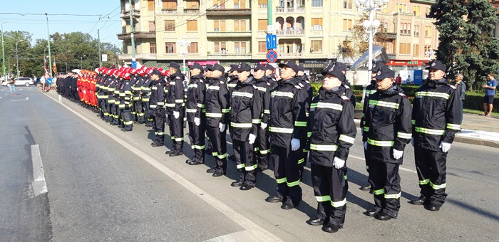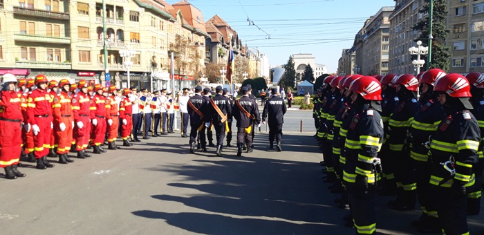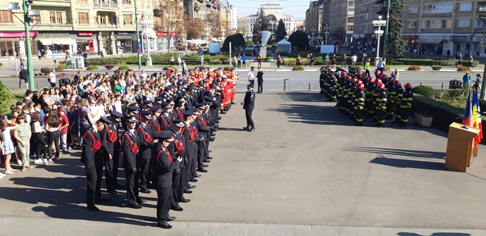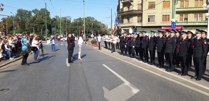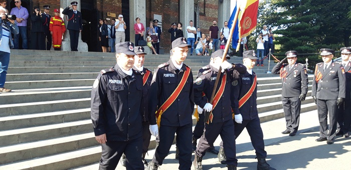Dupa ce partea oficiala s-a incheiat, a urmat parada, la care au participat mai multe plutoane ale pompierilor urmate de masinile din dotarea Inspectoratului pentru Situatii de Urgenta Timis.