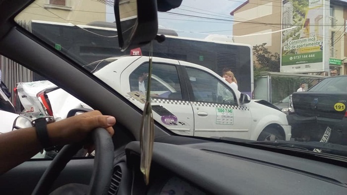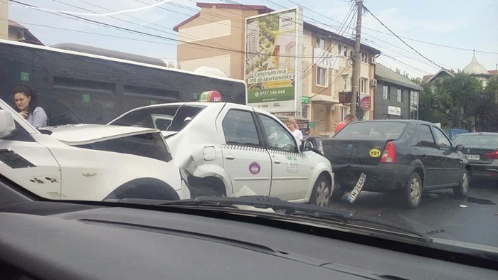 Cand ai unda verde de la podul Michelangelo pana la Spitalul Judetean, parca ai intentia sa calci mai tare pedala de acceleratie. Probabil asa au gandit si soferii care au trecut pe strada Cluj vineri dupa-amiaza, unde a avut loc o ciocnire in lant.