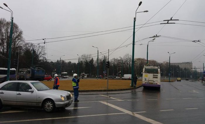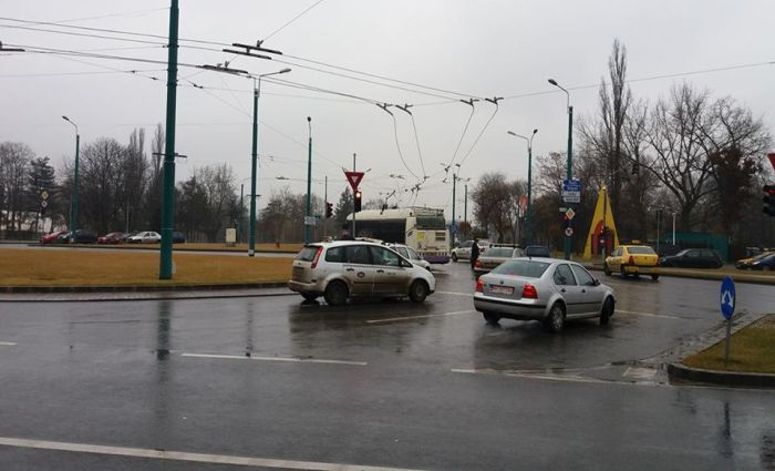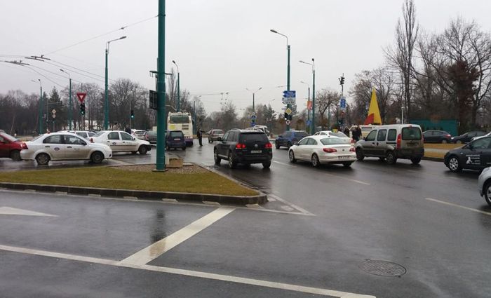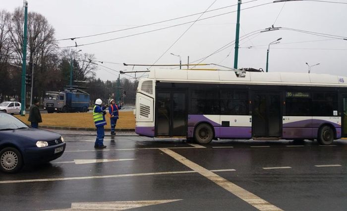 TIMISOARA. Trafic dat peste cap, marti, la Timisoara, dupa ce un troleibuz a ramas blocat in sensul giratoriu din zona pasajului Michelangelo.