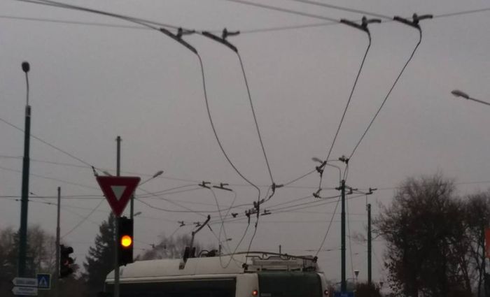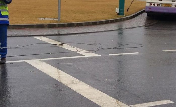 Un fir de curent care alimenteaza mijlocul de transport in comun s-a rupt si a cazut la pamant.