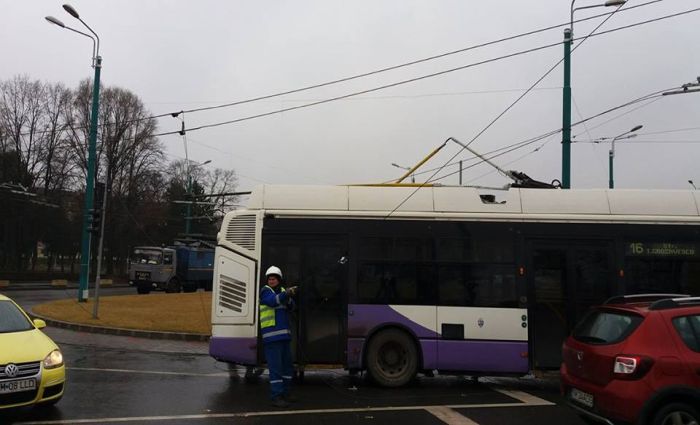 Calatorii ce se aflau in mijlocul de transport au coborat imediat si si-au continuat drumul pe jos, in timp ce soferita troleibuzului s-a chinuit sa tina de firele de curent in aer, pentru a face loc masinilor din zona sa ocoleasca mijlocul de transport.